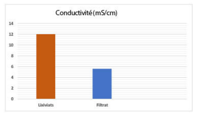 Les effluents liquides étudiés présentent une très forte conductivité électrique qui traduit le degré de minéralisation globale, avec une valeur dépassant les 12 mS·cm⁻¹ comme indiqué dans la figure 7.