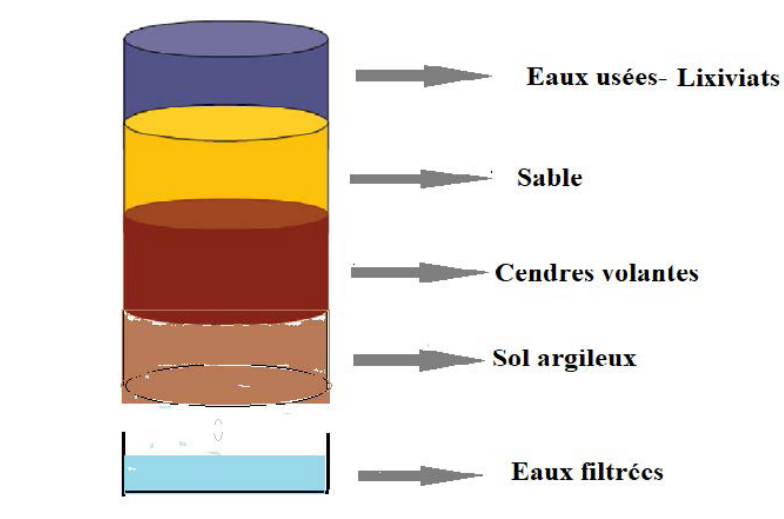 par notre matrice filtrante constituée de sable marin de taille granulométrique 100 µm, de cendres volantes et de sol argileux.
