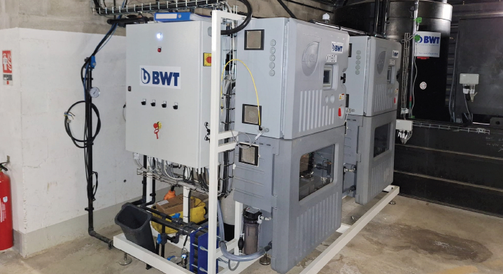 BWT propose ainsi deux types de traitements biocides, qui ont prouvé leur efficacité. Il y a, d'une part, la technologie BWT Eco-MX, qui repose sur la génération in situ d'une solution désinfectante chlorée fraîche par électrolyse de sel. Utilisable en remplacement du traditionnel brome, cette technique a notamment été mise en place par Idex La Défense (ex-Enertherm), le concessionnaire pour la production et la distribution de chaleur et d'eau glacée des bâtiments du quartier de la Défense (Hauts-de-Seine).